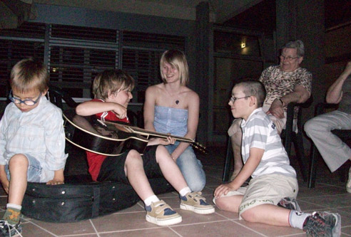 Laura joue pour son frère et ses petits camarades de l'ASL, un soir, à Valpré... Découverte de l'instrument.